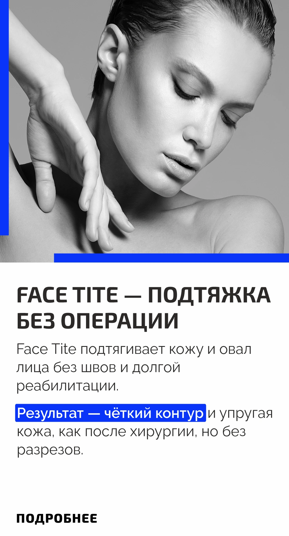 Ультразвуковая подтяжка без операции. Аппарат Utims воздействует сфокусированным ультразвуком на глубокие слои кожи — туда, куда не доходят кремы и даже уколы. Именно в SMAS формируется наш лицевой каркас. Под действием аппарата ткани подтягиваются, активируется выработка коллагена, и лицо начинает «собираться». Процедура идеально подходит, если появились брыли, овал «поплыл», намечается второй подбородок или лицо стало выглядеть уставшим. Всё это можно скорректировать без хирургии и восстановления — в один сеанс. Результат нарастает в течение 2–3 месяцев и держится до года. Упругая кожа, чёткий контур лица и естественный эффект без следов вмешательства.